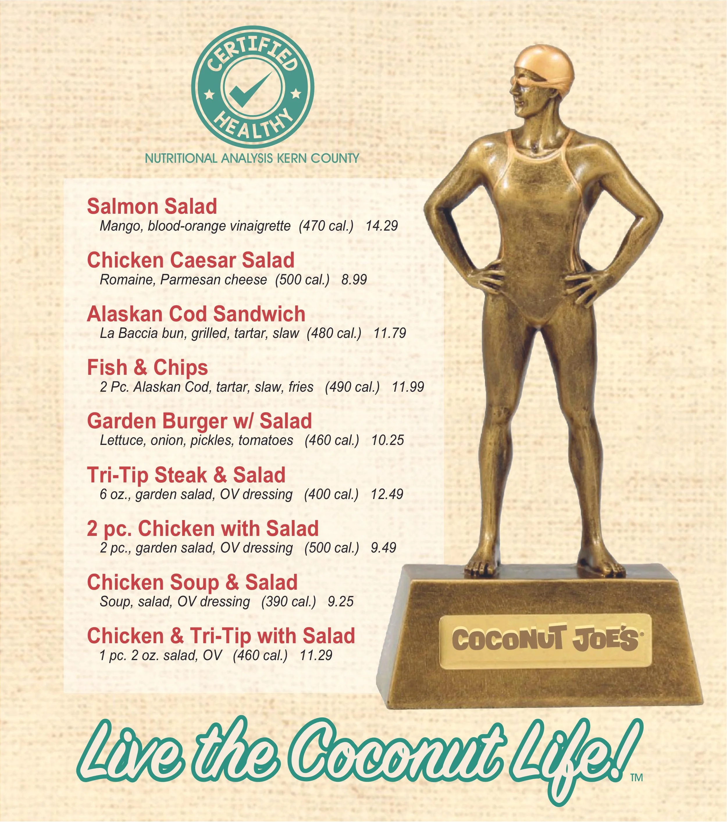 Choose from a whole bunch of merchandise options. We carry all of the Coconut Joe’s brands including “Coconut College,” “Bakersfield Beach,” “Live the Coconut Life” and “Be Kind. Always.” Grab a sticker, a mug, a beer glass, a collectible poster, a hoodie or a t-shirt the next time you are in!